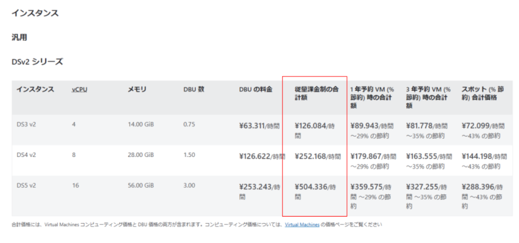 - Azure VMのインスタンス料金