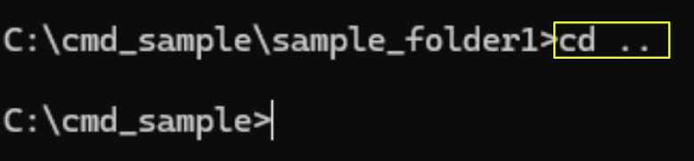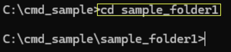 「cd フォルダ名」と打つことで、指定したパスに移動することができます。今回はカレントディレクトリ直下にsample_folder1があったので、「cd sample_folder1」と打つことでそのフォルダー内に移動できました。