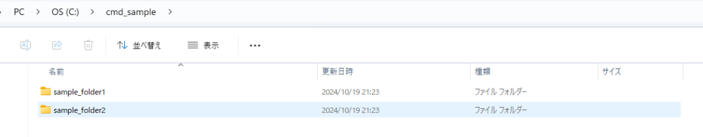 今回のカレントディレクトリには「sample_folder1」「sample_folder2」があったので、それらが表示されています。