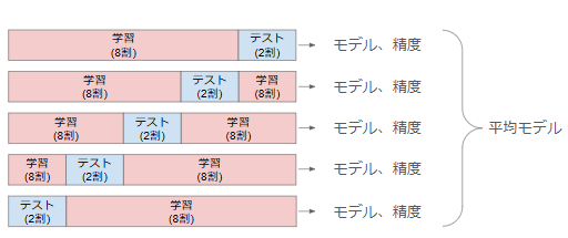 一般的なk-分割クロスバリデーションの流れは以下の通りです。