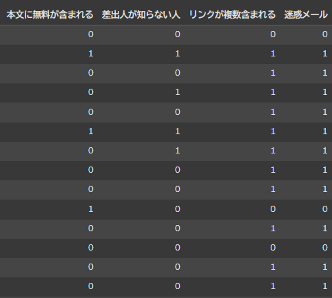 実際のデータは1か0のように数値に変えられてから、上記の解析がおこなれています。