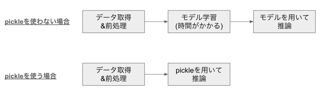 pickleを用いて学習モデルを保存しない場合、毎回モデルの学習をし、推論を実施することになります。