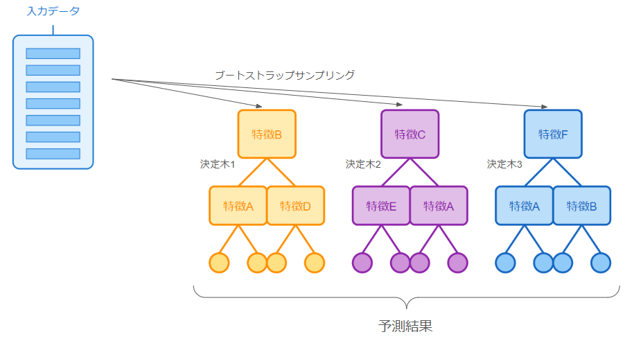 ランダムフォレストは次のプロセスで学習・予測を行います。