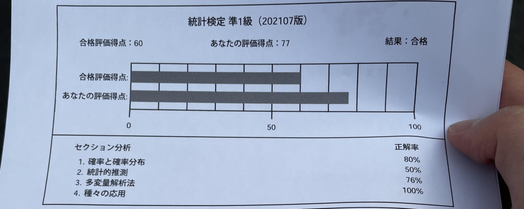 合格率は20%程度ともいわれており、かなり難易度が高い試験となります。私自身受けてみましたが、初心者だと絶対に受からない範囲と深さになっています。統計についてしっかりと学ぶ必要があると感じました。