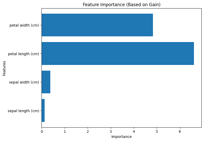 Gainに基づく重要度は、各特徴量が分割された際の情報利得(Gain)に基づいて算出されます。情報利得は、分割前後の不純度の減少量を示す指標であり、分割がどれだけクラスを分離するかを評価します。Gainに基づく重要度は、各特徴量がモデルの性能向上にどれだけ貢献しているかを示します。